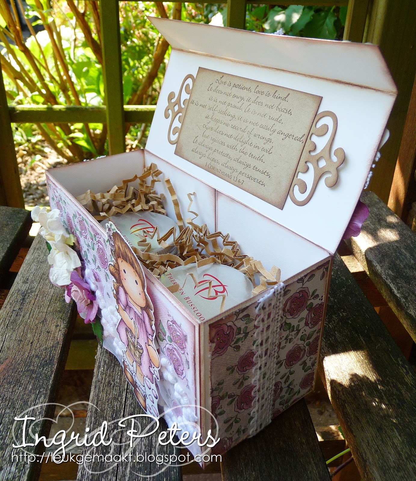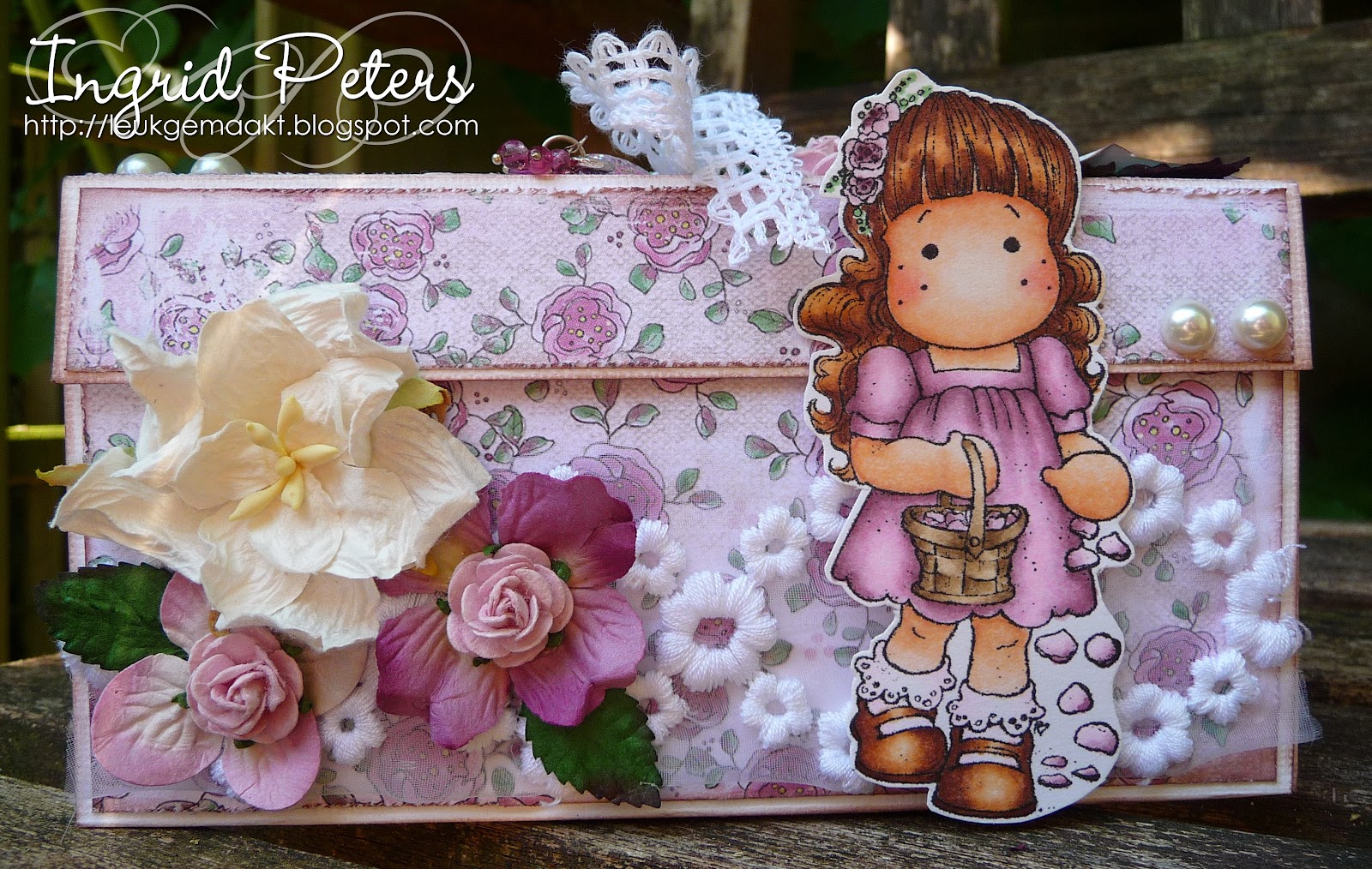 Dit is Cherrie with Tag, uit een eerdere serie van Tickled Pink Stamps. Ik heb haar ingekleurd met de volgende copic kleurnummers: huid E11, 01, 00, 000, 0000, R20; haar E59, 57, 55, YR33, 31, E41; rood R37, 35, 32, 30, 00, E41; groen YG95, 93, 91; tag E43, 42, 41, 0000.